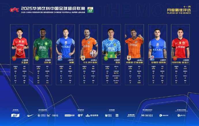 直播吧11月27日讯 中超官方公布11月最佳球员候选名单,候选球员是王燊超、法比奥、吴曦、卡扎伊什维利、侯森、克雷桑、安德烈·路易斯以及维塔尔。