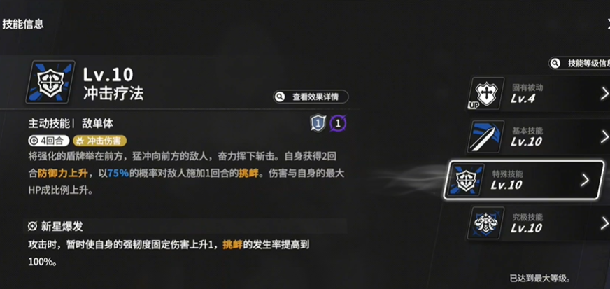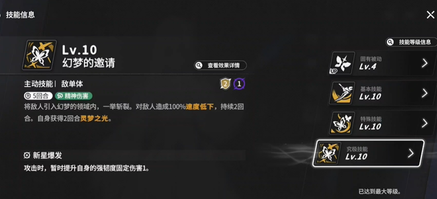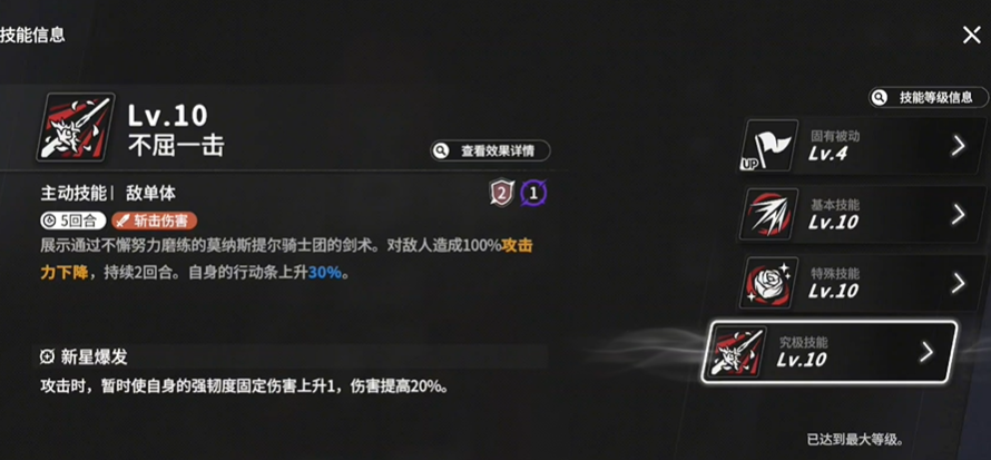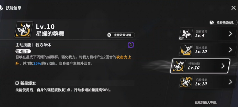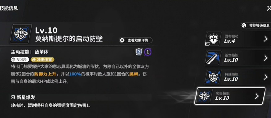 奥义能降低受到的伤害,并提升自己30%的行动槽,队友越强她提供的增益就越有价值