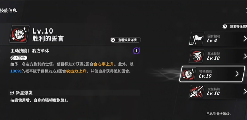 小技能能够为队友提供暴击率和攻击力加成,可以让自己获得额外一回合
