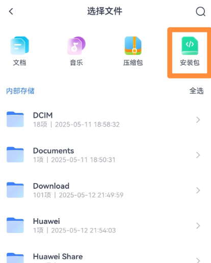 2、如果实在不知道安装包的位置,可以在文件管理中筛选安装包,手动寻找刚刚提取到的安装包