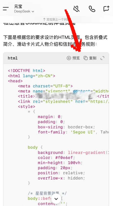 2、出来后预览,不断向ai提出建议,修修改改直到你满意为止,就可以复制了