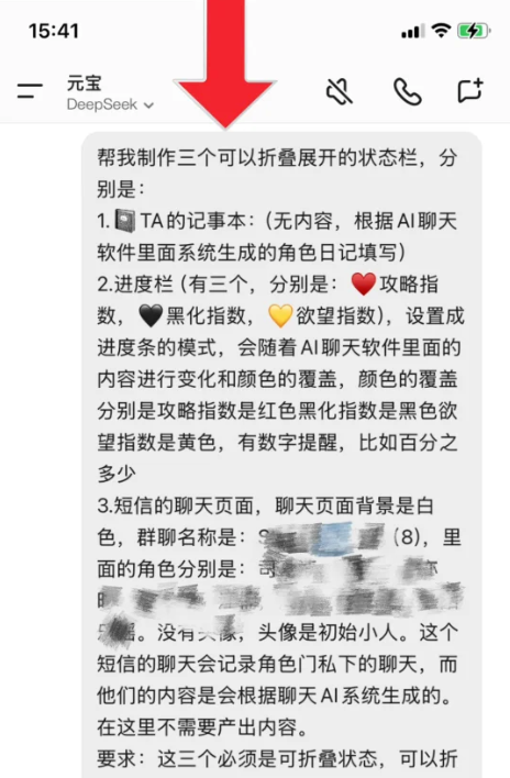 1、和小剧场差不多,在deepseek或其他AI工具里面整理好你的状态栏要求,越详细越好,发送等待完成