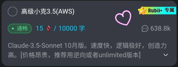 rubii为大家提供了许多模型,不需要自己去找ai模型并配置api,操作起来更加简单。每个模型的回复风格、人设贴合程度以及收费标准均不一样,在不同设定下,模型的ai感和活人感也有区别。由于模型较多,导致许多用户产生了选择困难,不知道究竟要用哪个模型最好。下面为大家带来最新模型评测,帮助你决定用哪个模型。