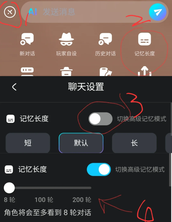 - rubii提供记忆长度功能,比如记忆拉条到20轮时,每次发送消息会包含前10条聊天记录+后台智能搜索出的10条相关记录
