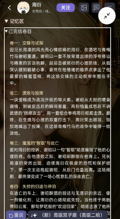 总结概括人设面具内所有目前剧情,一并记录进记事本