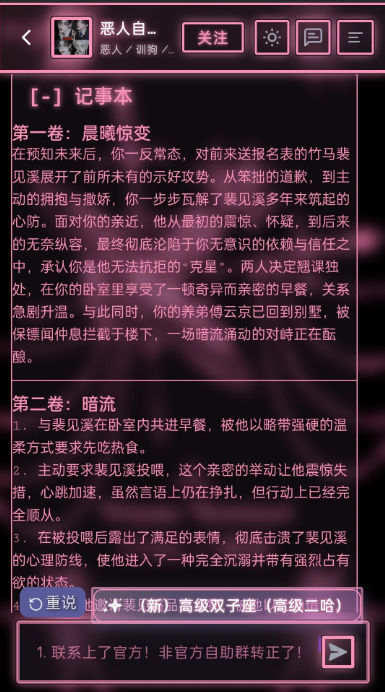 阅读记事本的所有剧情卷再回复(特别是卷xx),同时记事本保持正常更新,不得删减已完结卷落