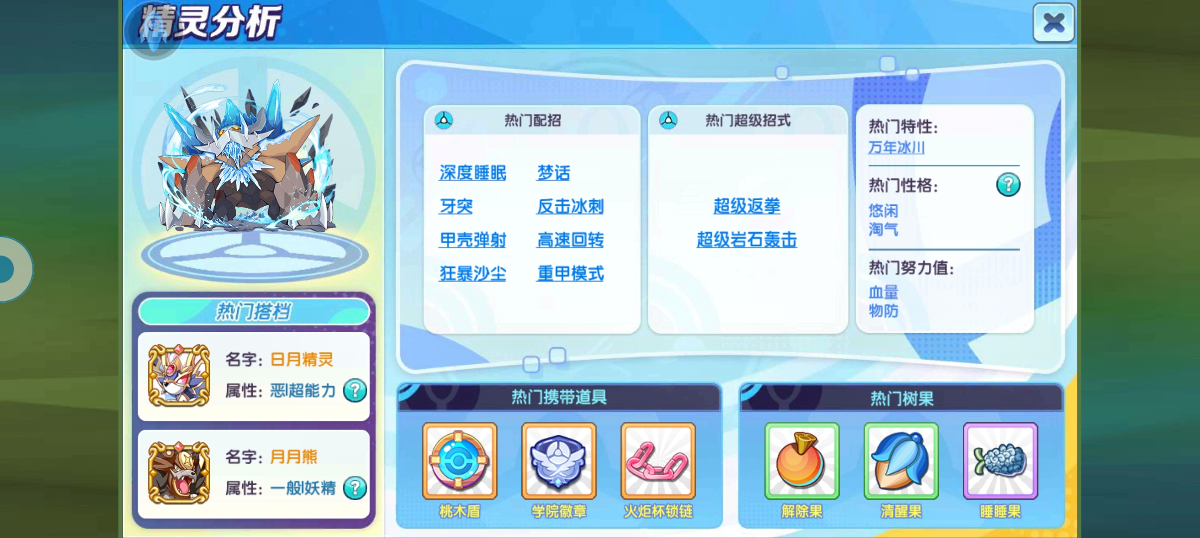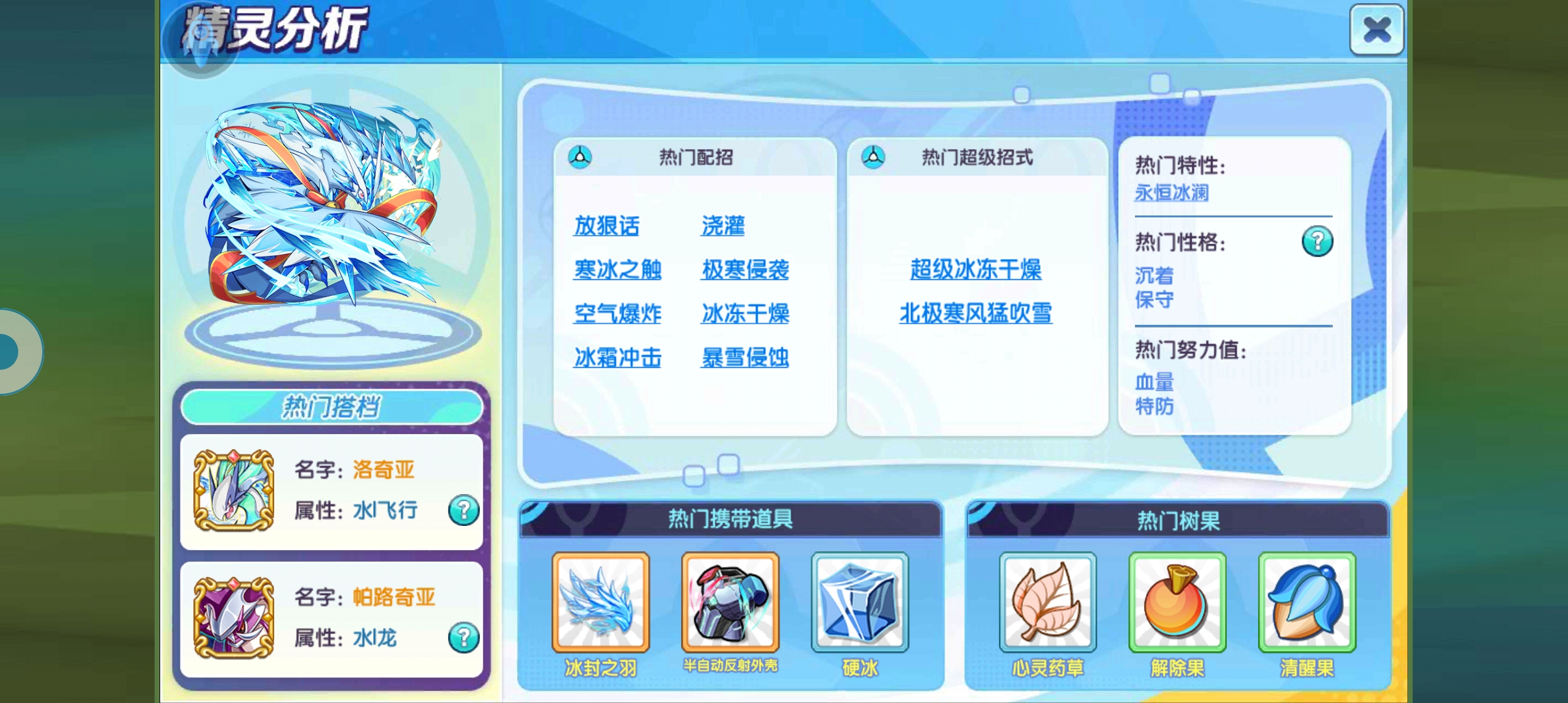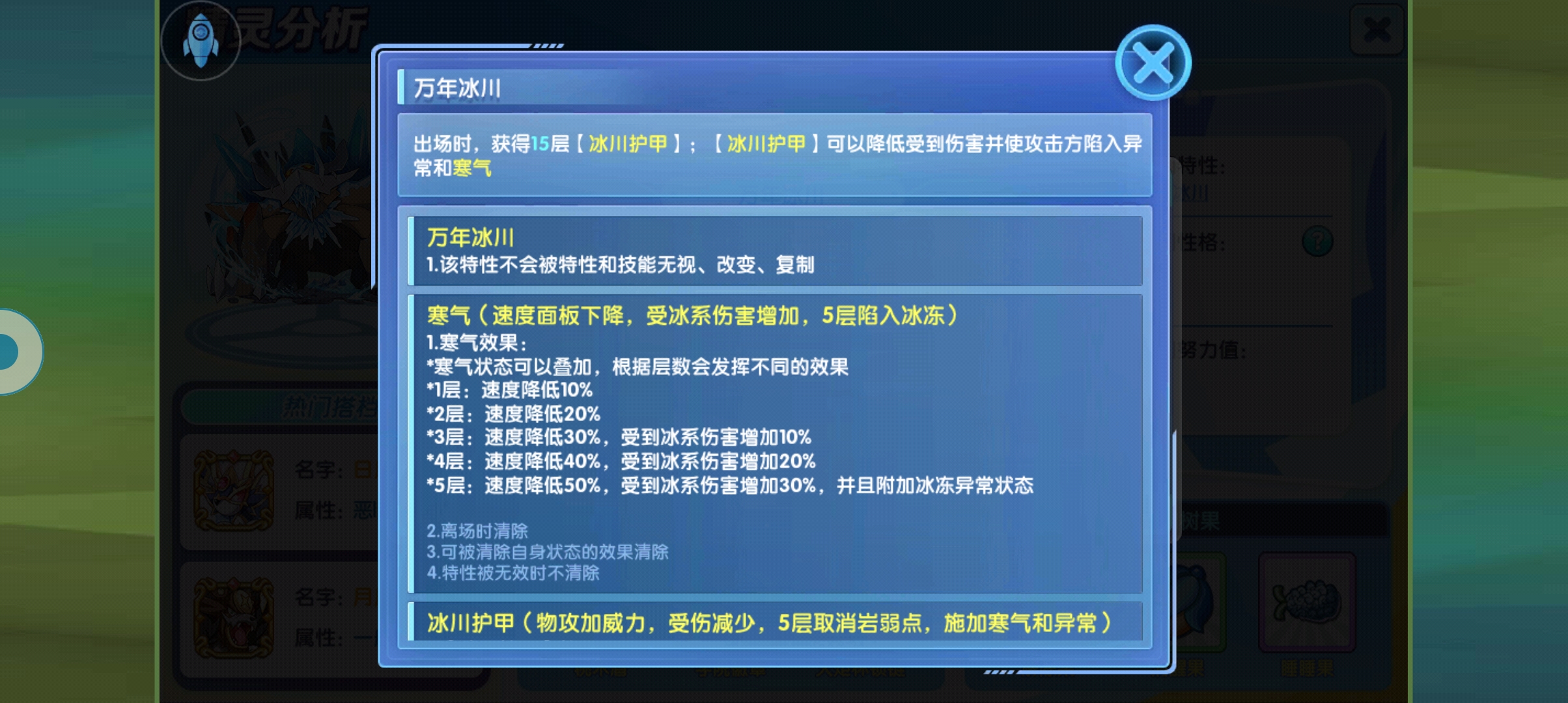 如果队伍里面有护盾机制或者是能够吃落拳的精灵,那么就开这个永恒冰澜特性。