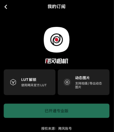 【设置】-【我的订阅】使用手机号登陆,当显示已开通专业版后在拍摄界面左右滑动看是否开启了内置lut