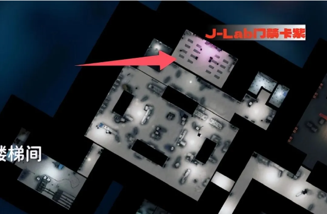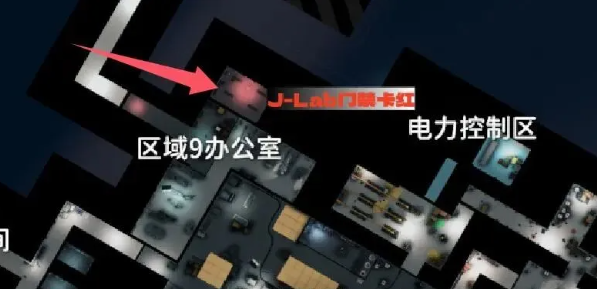 我们进实验室的入口,对直往前走就能找到,因为是放映室用的投影,切大地图看到是黑的。这个地方有游戏卡带,有J-Lab箱是个不错的物资点