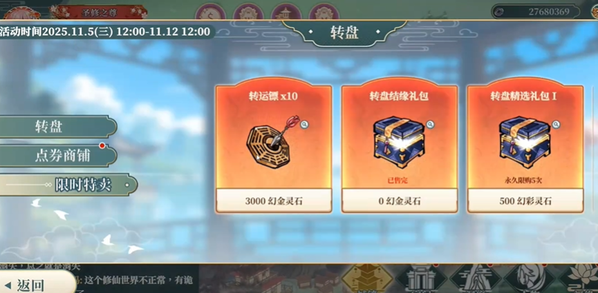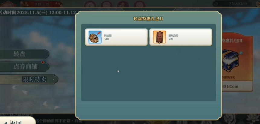 2、每天送免费一转,活动持续8天共8转,然后有个0幻金的礼包会送3转+10游玩点券