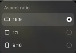 3、视频尺寸:支持16:9、1:1、9:16三种主流尺寸