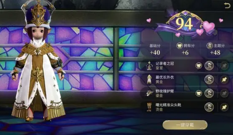 时尚品鉴拥有分满分为12分,拥有一件装备+3分,如需拿满 95分满额金蝶币奖励,最少要拥有3个部位的装备。