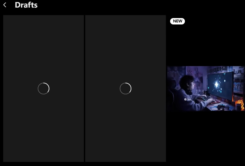 2、视频生成后点击头像处→Drafts(草稿),这里转圈说明还在审核中,当转圈变成了进度条说明审核通过,等待几分钟即可查看视频