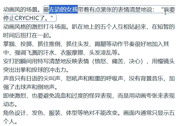 1、不要直接提到作品或角色名字,角色可以用位置指代