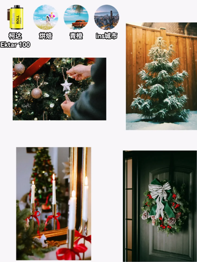 这个时候不管选哪个滤镜都能出,雪花飘飘的夜晚,氛围感直接拉满,照片里满满的节日气息。