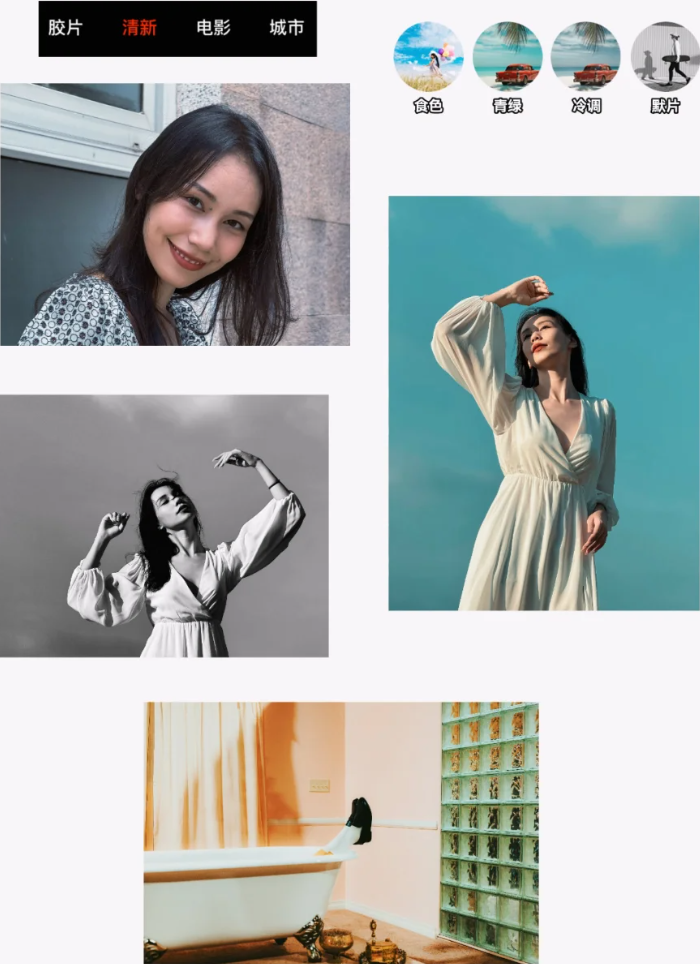 模拟经典电影色调,让你的照片瞬间高级起来,还可以偶尔切换成黑白滤镜,人物的轮廓、神情在黑白的衬托下更显质感,情绪也被无限放大。