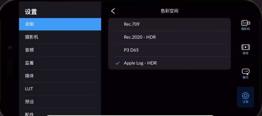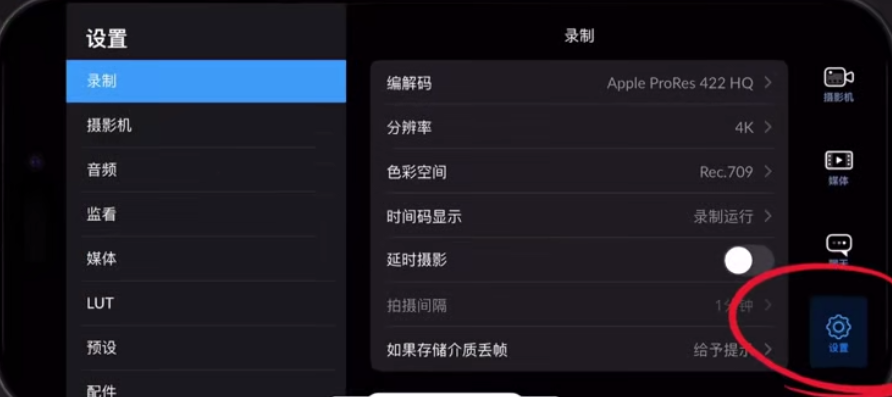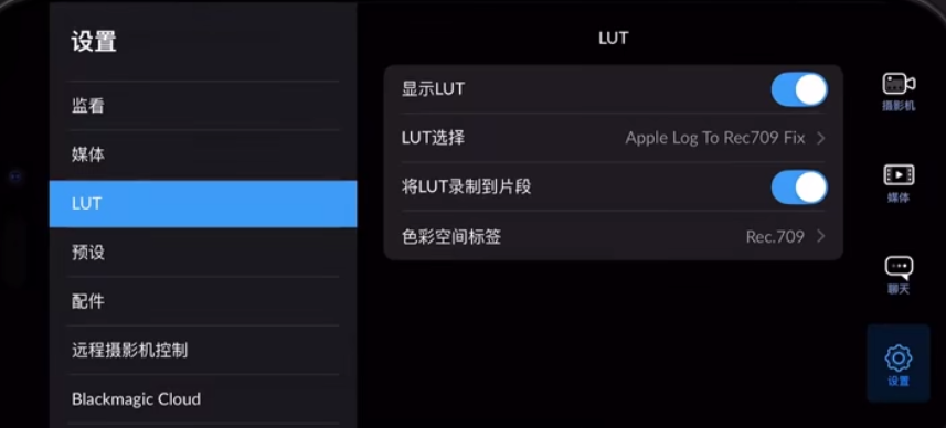 1、打开BlackmagicCam相机后点击一旁的【设置】