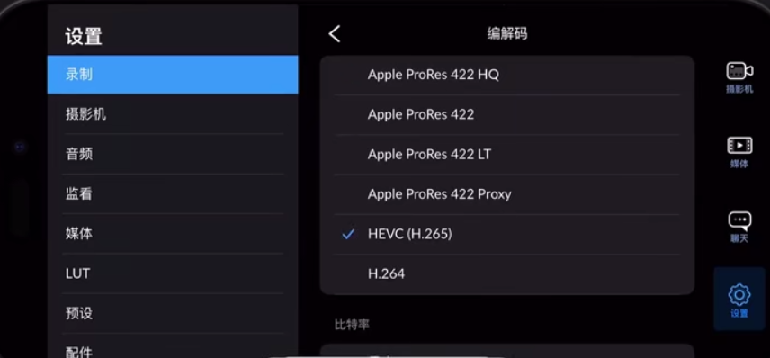 3、再进入【编解码】,选择HEVC(H.265),可以节省很多空间