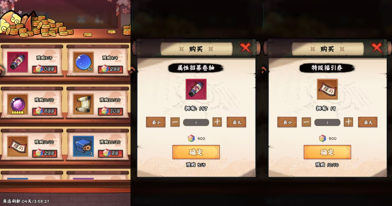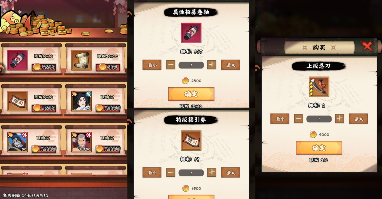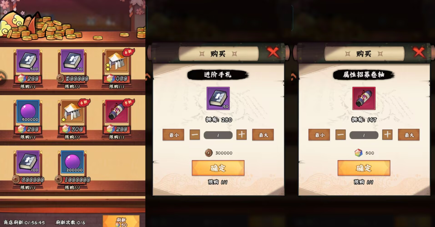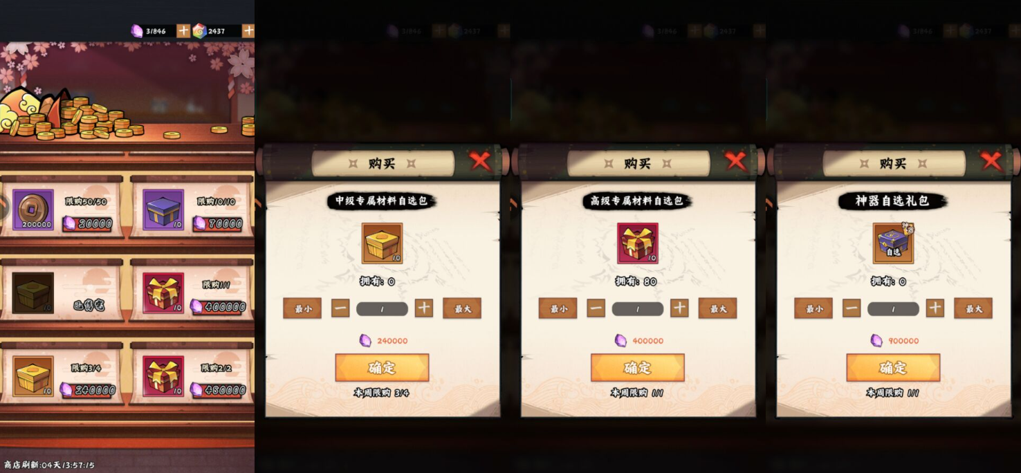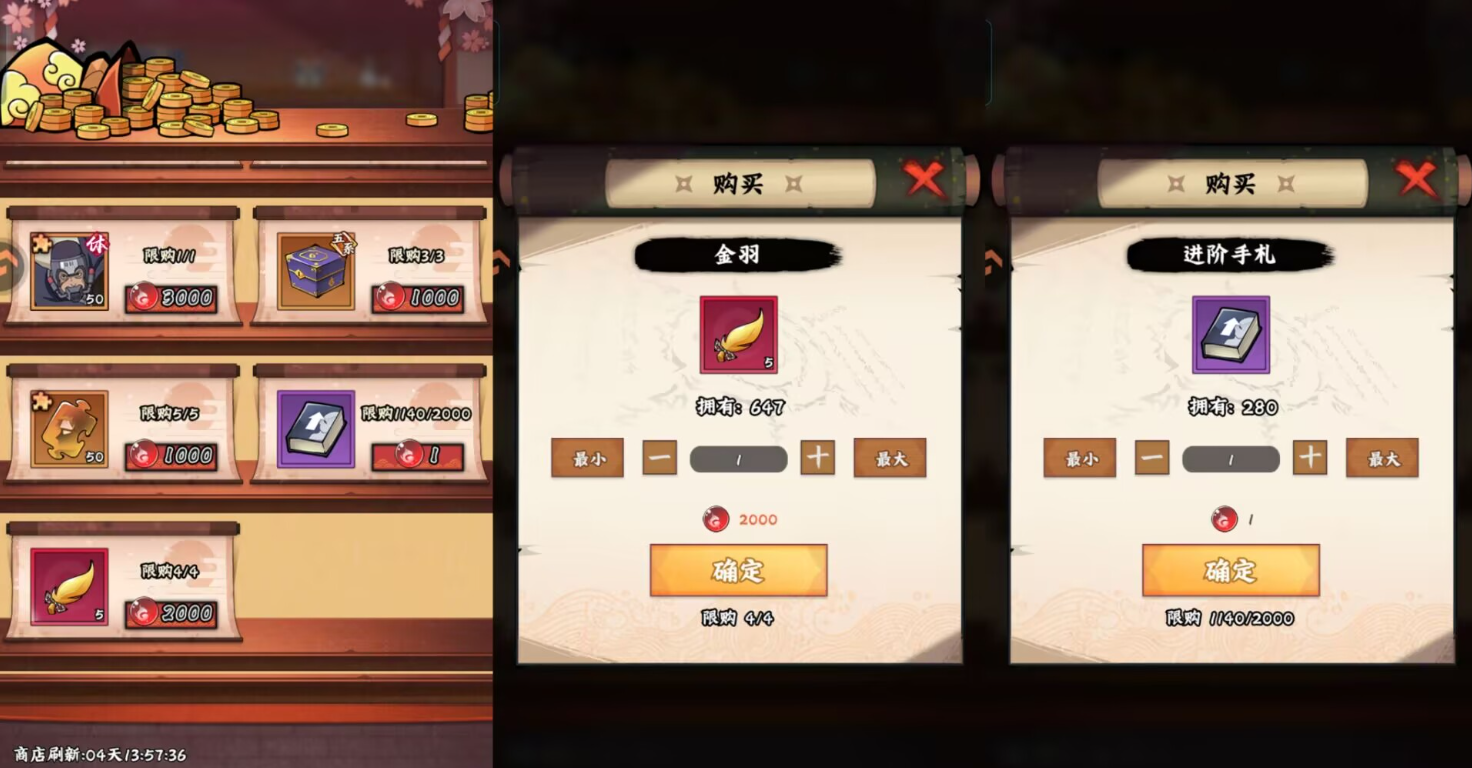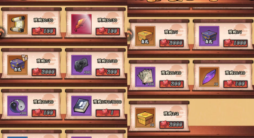 ps:杂货店每天免费次数刷完购买就行了,不用花忍币去刷新商店
