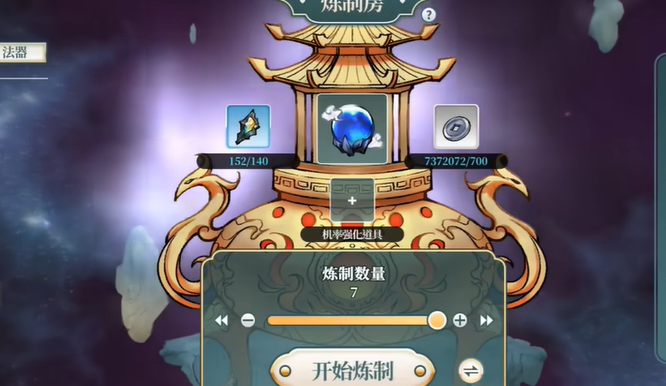 8、也可以到炼制房-法器模块,使用纹石晶髓来炼制器纹石,用来突破装备