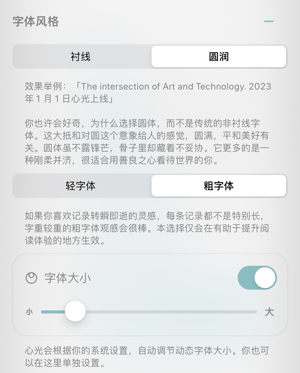字体风格(衬线or圆润)、字体粗细、字体大小