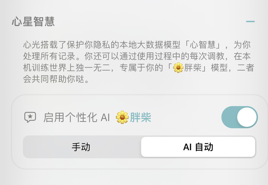点击「心星智慧」,为 Ta 取名,手动更新模型或交给 AI 自动