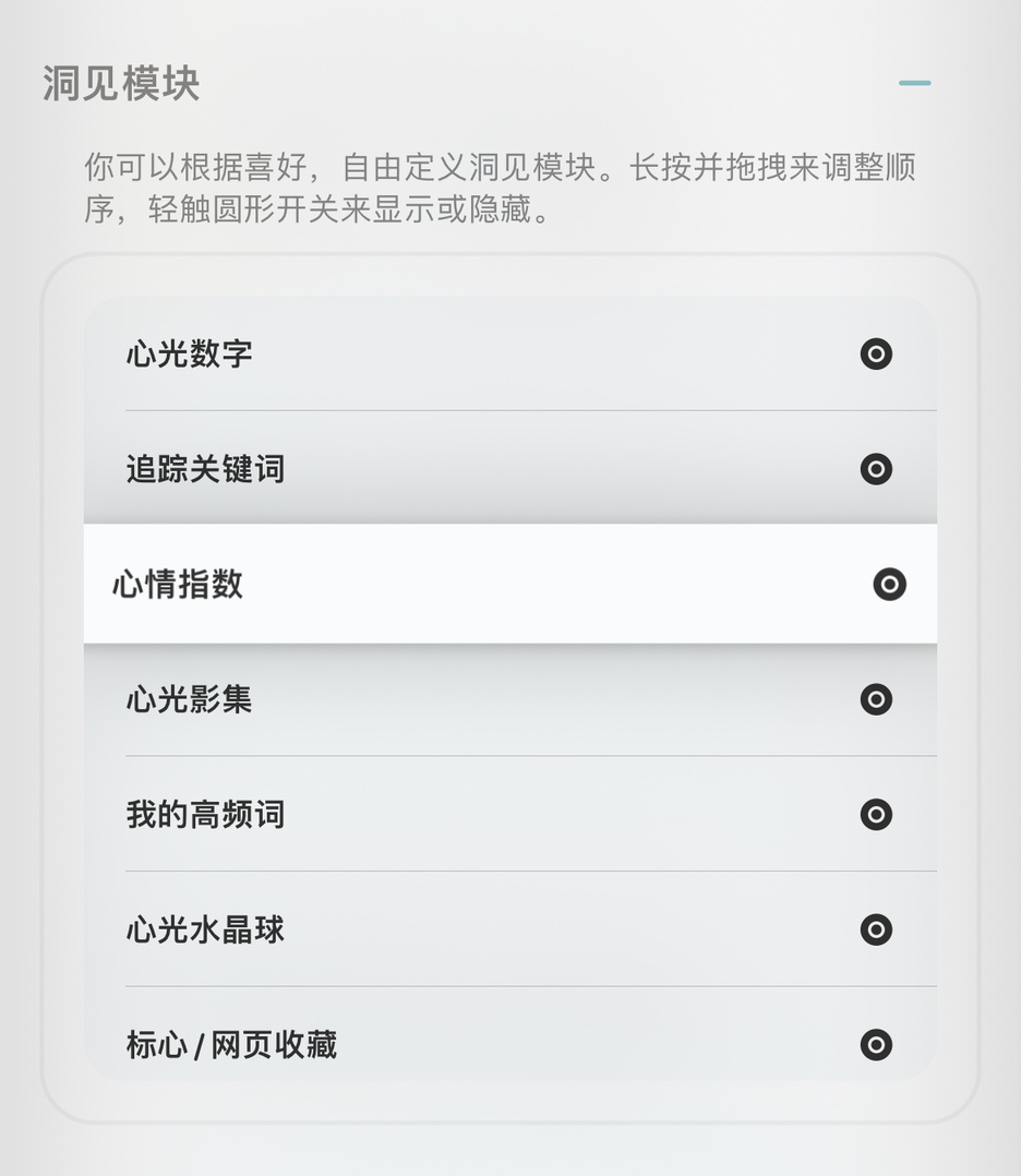 自定义是否显示各个卡片,上下拖拽还可以调整排序