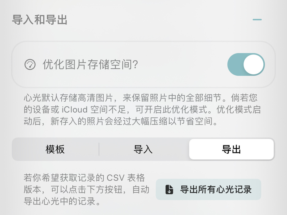 ①原始记录导出备份:在「导入和导出」中,可以一次性全量导出所有记录的CSV 文件