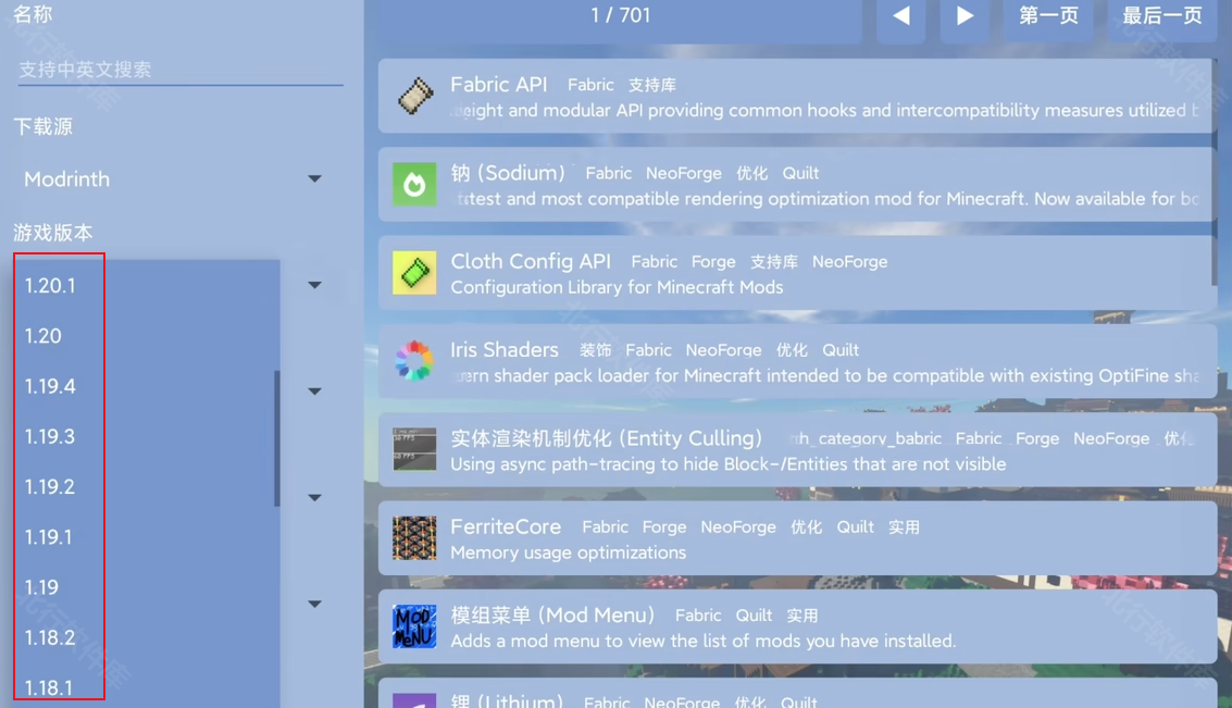 3、找到你想安装的模组后,需要下载和你游戏版本一致的模组版本