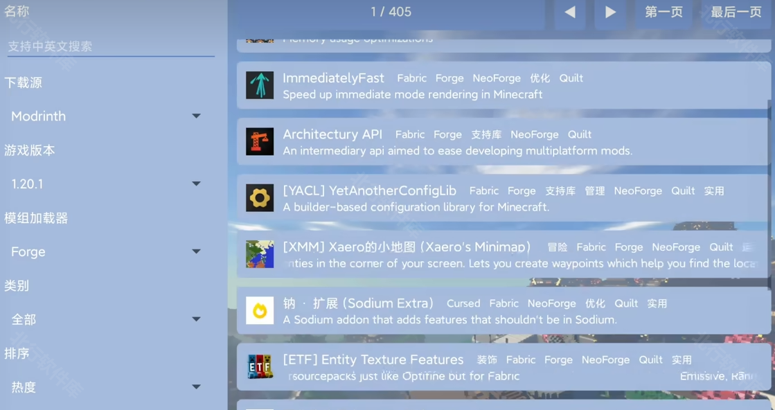 1、打开下载界面,在左侧筛选对应游戏版本的模组