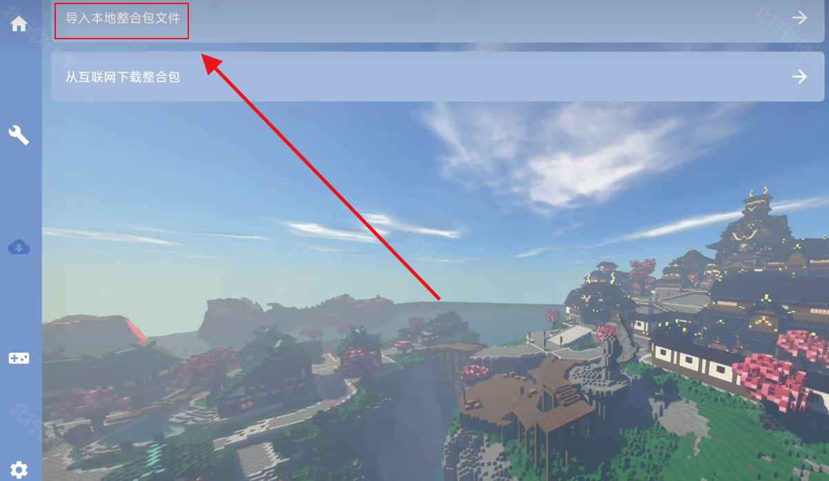 2、进入FCL启动器左侧的下载页面,点击上方整合包,点击左下角安装整合包,选择本地导入