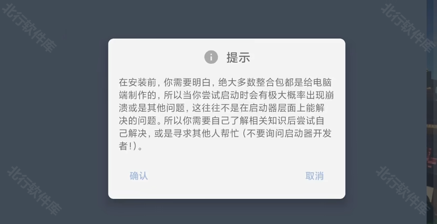 4、出现提示后点确认直接安装整合包,有需要可以在最上方更改版本名字