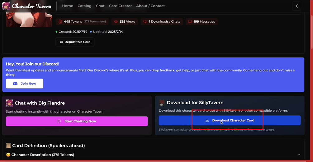 站内找到并打开喜欢的角色卡
