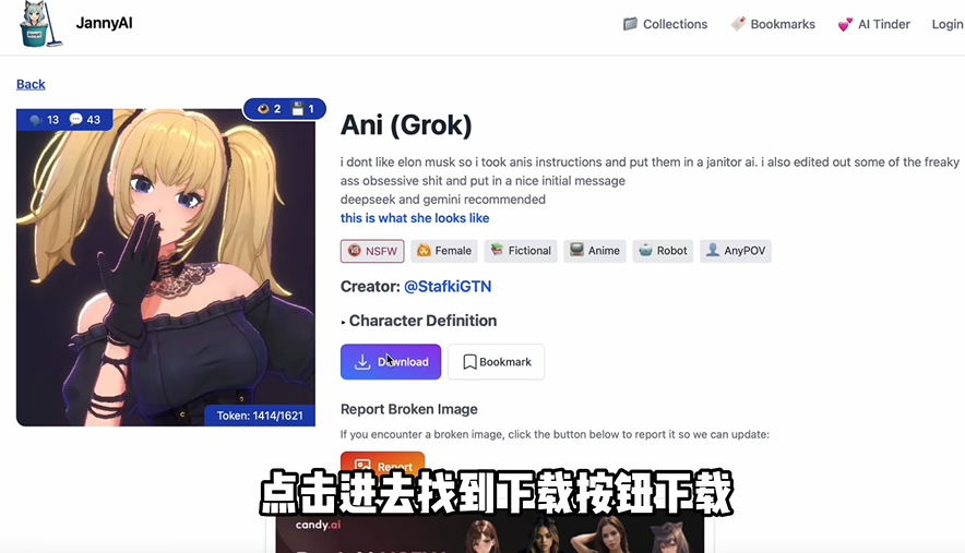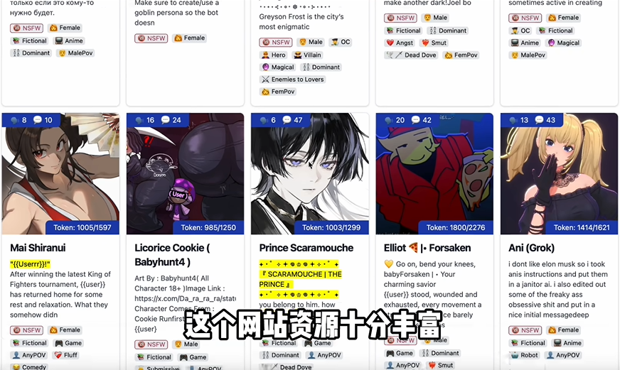 网站可以搜索或刷新角色卡,找到喜欢的角色卡后点开