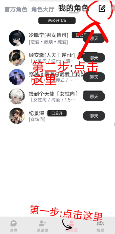 1、点击【AI角色卡】→【我的角色】→点击上方【编辑按钮】可以开始写卡