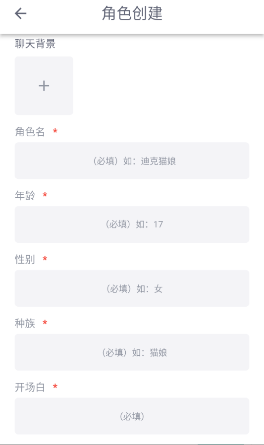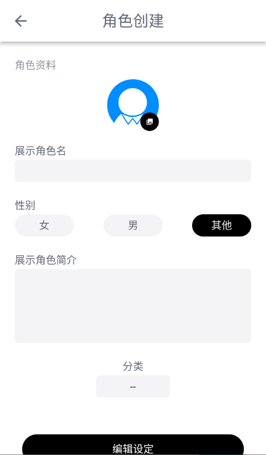 2、添加角色头像,填写角色名字,选好性别后可以开始编辑简介(简介很重要,建议先写上非常重要的设定,再写上角色的人物设定)