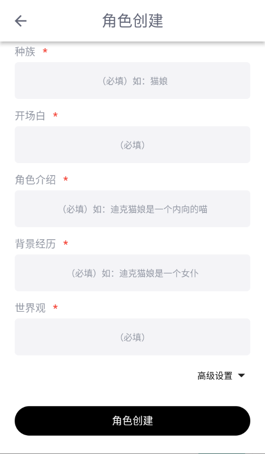 3、有红星的是必填项,开场白决定了剧情导向、状态栏、文笔等,也需要精心设计后再填