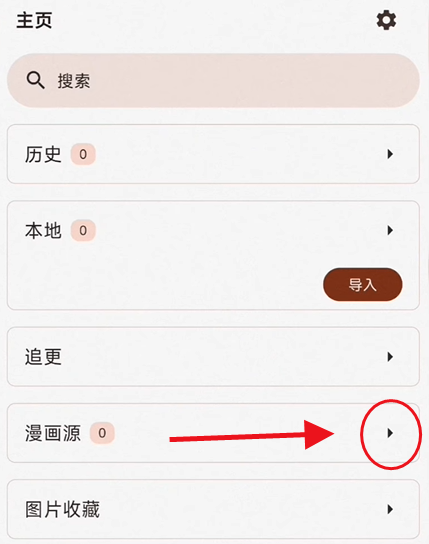 1、进入Venera主页,点击漫画源栏目后方的三角