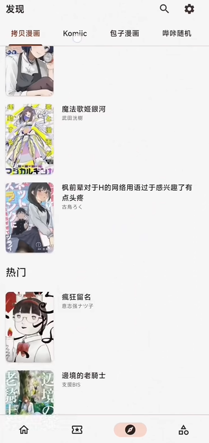 5、添加完成后进入发现界面,在上方可以切换不同漫画源