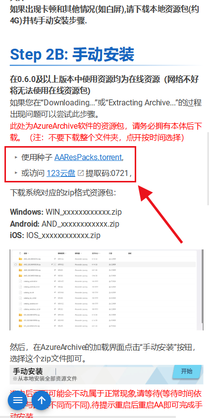 2、下滑找到【手动安装】条目,在这里可以下载资源包