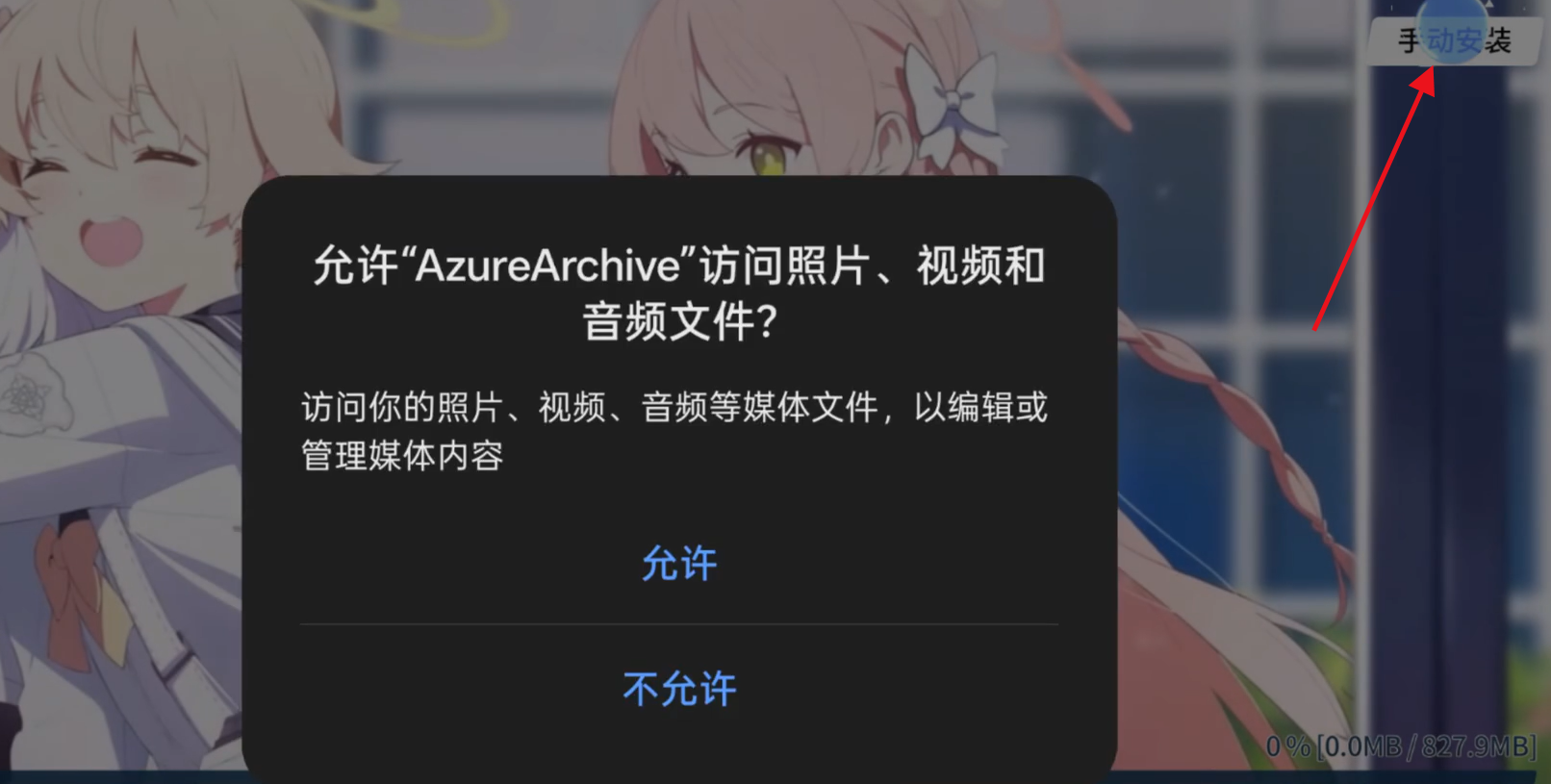 3、打开AzureArchive点击右上角【手动安装】,允许访问手机储存文件