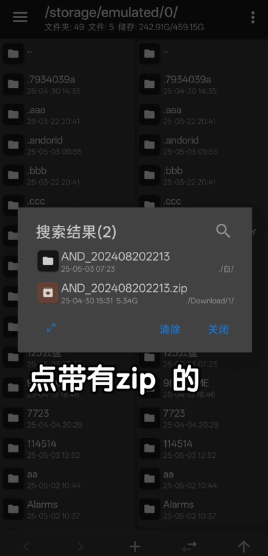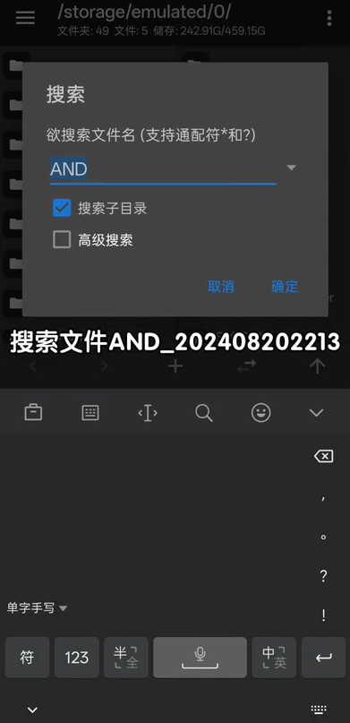 6、打开MT管理器,点击右上角三个点使用搜索功能,搜索文件AND_202408202213(你下载的资源包)