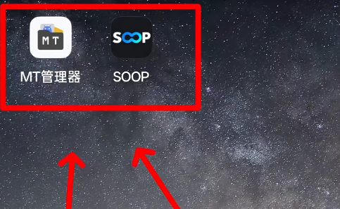 1、首先需要在你的手机上同时安装SOOP和MT管理器