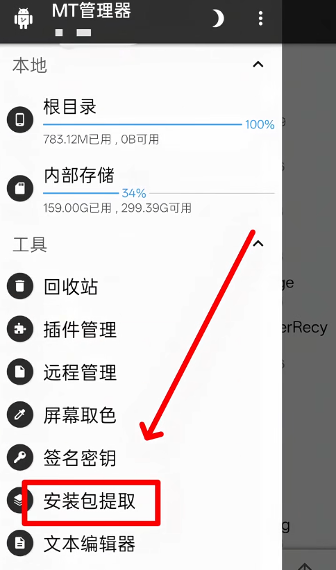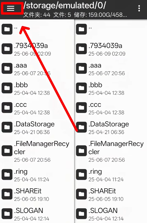 2、打开MT管理器,点击左上角“三”按钮打开菜单
