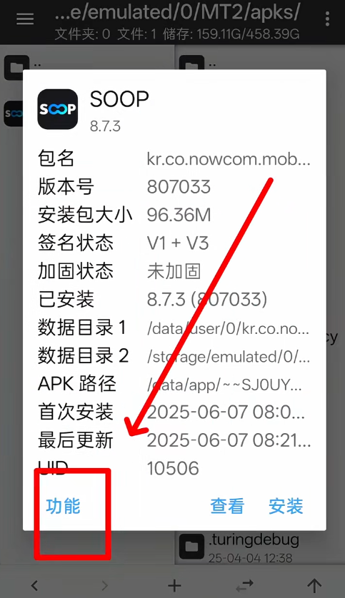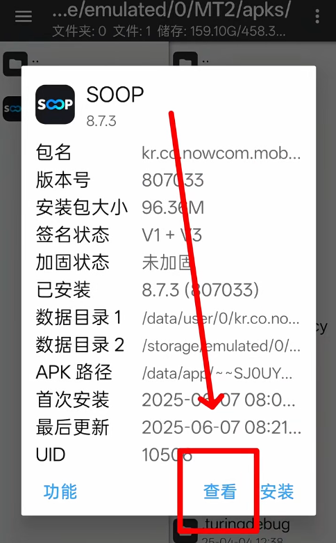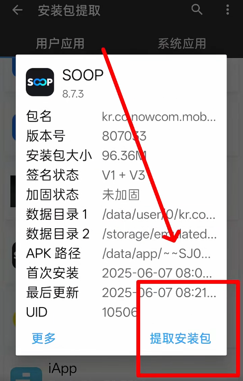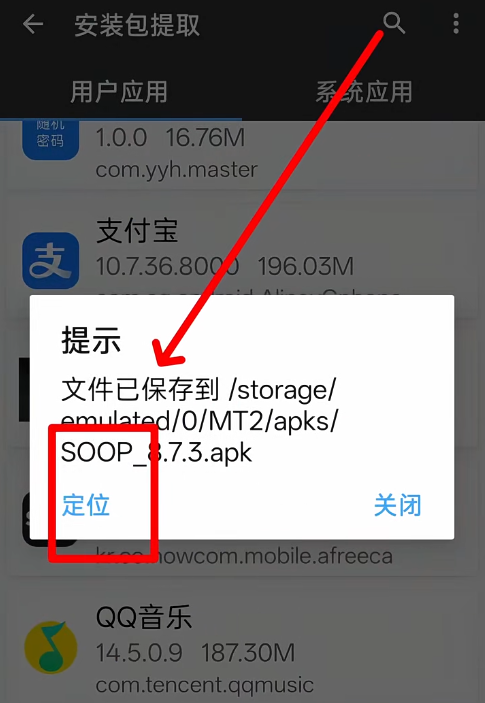 4、MT管理器会自动检索安装包,在“用户应用”列表中点击SOOP