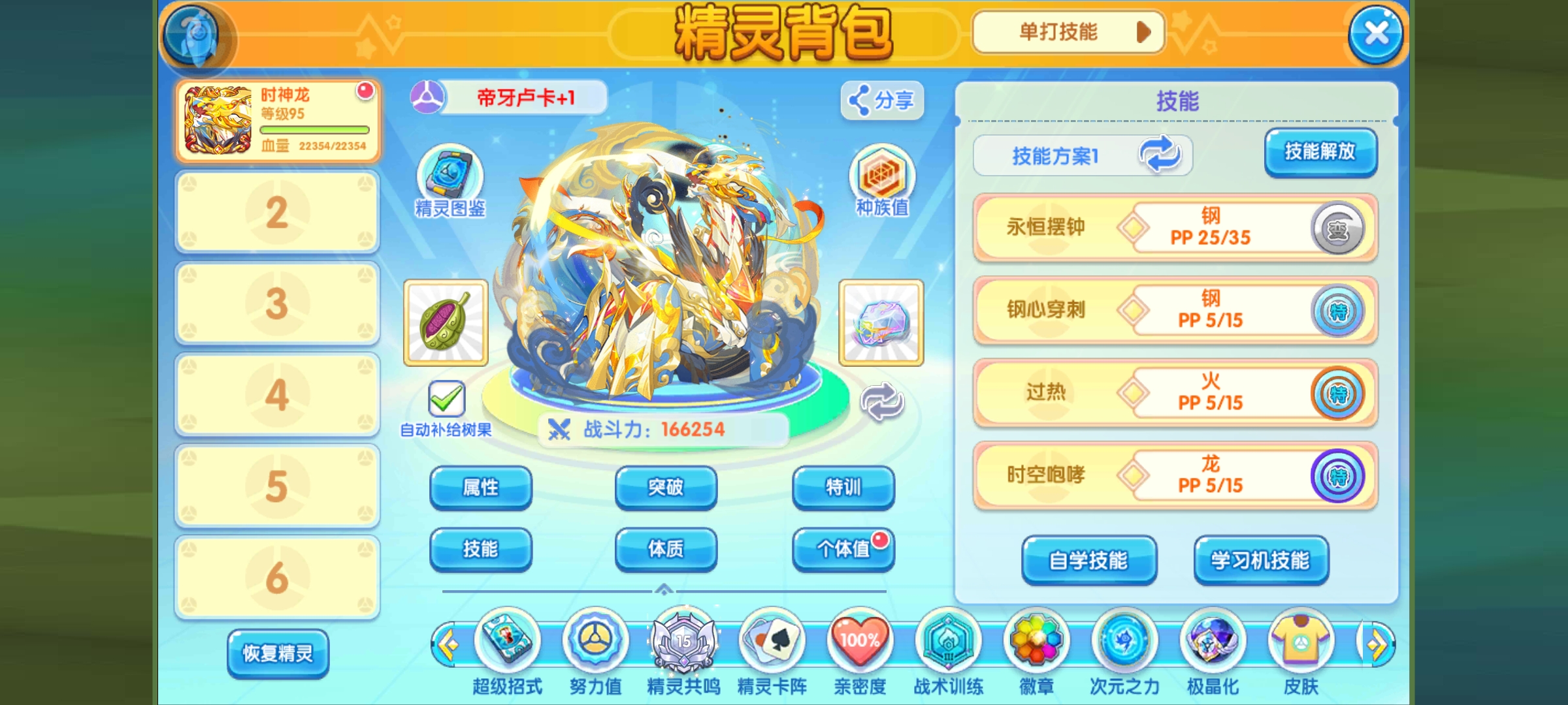 永恒摆钟+时空咆哮/天龙流星/时空电触/龙旋波+钢心穿刺/钻石共振波+忍耐/地刺反击/过热/岩钉/吼叫/净化光华