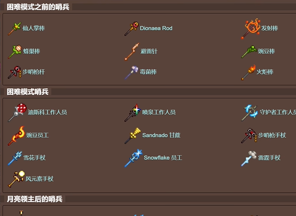 boss前武器血杖乱杀蜂王前,击败蜂王获取蜂巢书页以发挥其和海蓝权杖真正实力乱杀肉前,肉后平衡之书生长书页秒伤一万多加繁茂书页后秒伤四万多你无敌了,花后水滴彩虹磁球水滴彩虹彩虹枪;石后月球漫步罗马焰火筒;月后散射终极棱镜个个重量级,枯萎夜光枯萎蜂王枪再不缺蓝,暗影墙后带满“仆从”随随便便超模输出乱杀完了