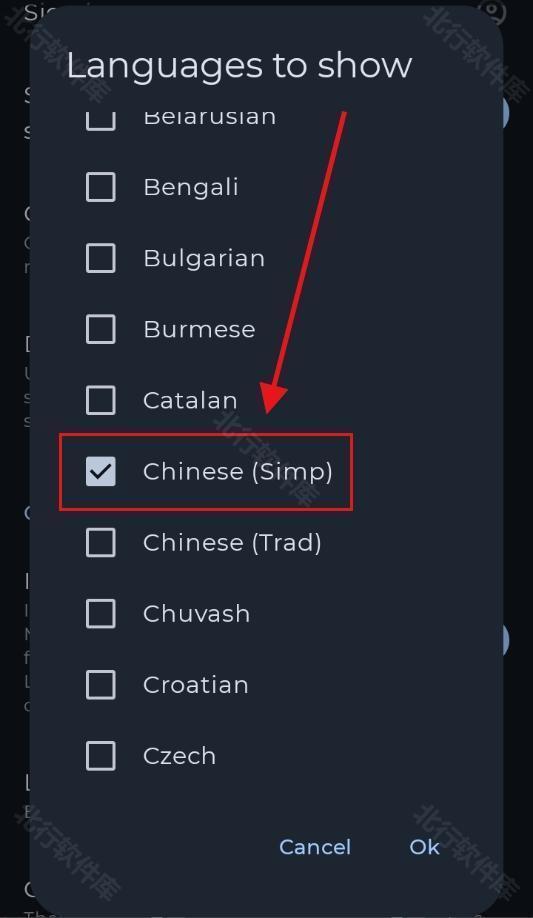 5、弹出语言菜单,勾选“Chinese(Simp)”并点击“OK”保存。之后就能展示中文汉化后的漫画资源了