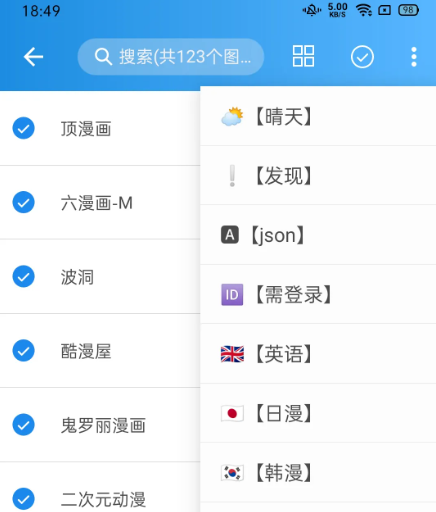4、导入后还可以按照漫画类型进行筛选
