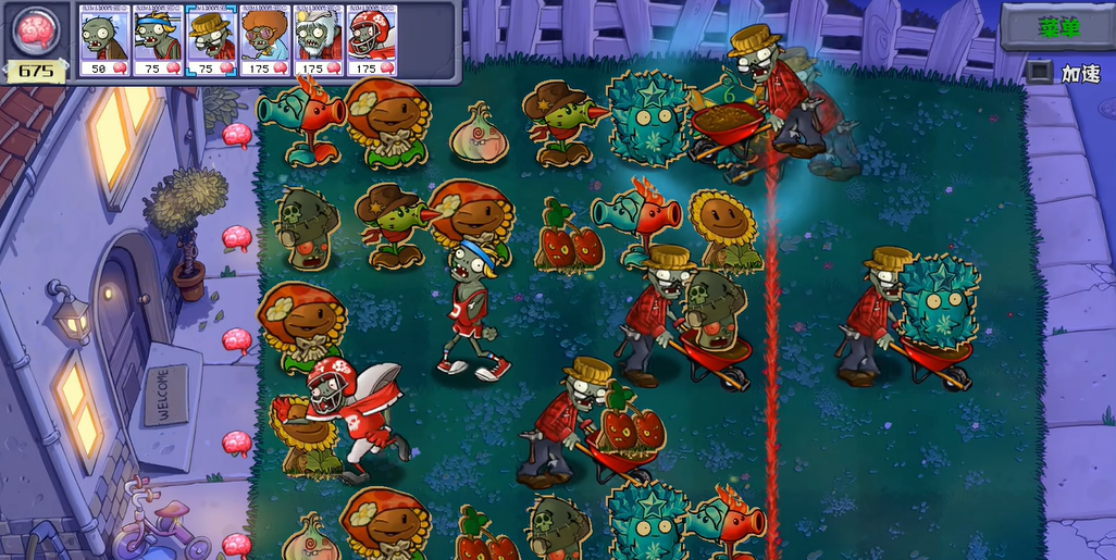 所以看准位置放下冲锋橄榄读报僵尸,在特定阵容中,一只冲锋橄榄读报僵尸便可单刷一路植物
